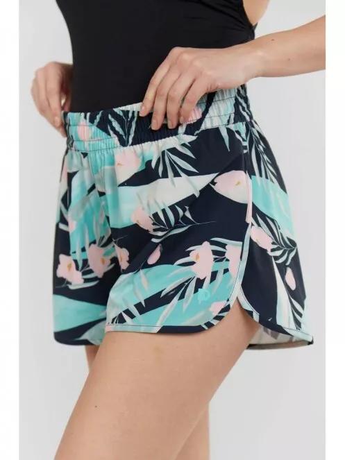 Sporty and feminine on the beach? The Fundango Elderberry Board Short women's shorts make it all possible! Classic design and fun patterns will instantly brighten up your beach set. The beach short's elastic waistband keeps the bottoms in place and prevents shifting during intense movement, while its external pockets keep your important documents and keys close at hand. The elasticated fabric construction and Regular Fit cut ensure complete freedom of movement. Incredibly lightweight and thin, the beach shorts feature a new generation of quick-drying properties thanks to water-repellent technology. The extremely fast drying material guarantees maximum comfort while wakeboarding, surfing and going to the beach, but the high level of comfort can also be useful in the gym!