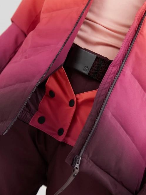 The Fundango Pumila Padded Jacket women's ski jacket is the brand's warm, sporty winter jacket. Your valuables can be comfortably stored in the front zip pockets, inner pockets, media holder pocket, mesh goggle holder pocket, zippered chest pocket, and ski pass pocket. The elastic, Velcro-adjustable cuffs fit snugly on your wrists, keeping your arms warm without restricting movement and preventing the sleeves from bunching up. Welded quilting and sealed seams keep out sudden precipitation. The attached snow gaiter, which can be connected to ski pants, even prevents snow from getting under your clothing during more substantial falls. The development of the high-quality Dripex membrane used in this jacket was inspired and assisted by athletes training in extreme weather conditions. In line with their expectations, the jacket does not allow cold wind or unwanted moisture to penetrate while allowing sweat vapor generated during active movement to escape freely. The 15,000 mm rating means that every square centimeter of the ski jacket must withstand a water column pressure of 15,000 millimeterswithout allowing moisture to pass through. This value indicates premium-quality apparel: the jacket remains impermeable to water even in heavy rain. Its Slim Fit cut ensures complete freedom of movement and allows for layering of technical clothing. The fixed, drawstring-adjustable hood and the drawstring-adjustable waist protect you from the cold wind. The synthetic insulation of the ski jacket keeps you warm without compromising breathability in adverse weather conditions, helping to preserve the warmth your body generates and preventing heat loss, allowing the jacket's wearer to stay comfortable even in colder temperatures. You can easily regulate your heat release with the zippered ventilation openings. The ski jacket has a breathability rating of 8000 g/m2/24h.