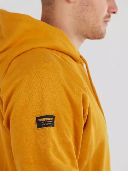 The sporty style of the Fundango Talis Hooded Sweatshirt is a popular new addition to the brand. It’s very soft to the touch cotton blend fabric. It is a highly breathable fabric that retains these properties throughout its lifetime. Its handy kangaroo pocket keeps your essentials nearby, and you can keep your chilled hands warm. Its Regular Fit cut ensures complete freedom of movement, in addition while it's drawstring adjustable hood and ribbed trims. The yellow hoodie is set apart by minimalist details and nature-inspired graphics.